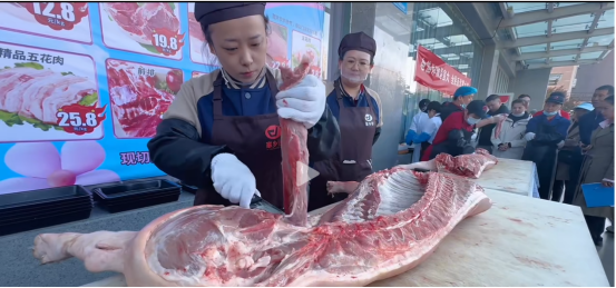 本次競賽以“精工細作、匠心傳承”為主題,通過抽簽分組的形式,8支隊伍兩兩對決,歷經(jīng)4輪激烈比拼。選手們需計時中完成鮮肉分割,后續(xù)階段邊講解邊精分割、逐一擺盤展示及標準化流程操作,評委組從分割效率、刀工精準度、產(chǎn)品美觀度及衛(wèi)生規(guī)范等多維度嚴格評分。賽場上,參賽選手手法穩(wěn)健嫻熟,精準把控每一刀的分寸,展現(xiàn)出扎實的專業(yè)功底與默契的團隊配合?,F(xiàn)場觀眾掌聲不斷,更有市民駐足圍觀,直呼“大開眼界”。
