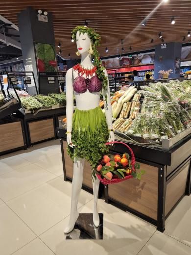富于變化的陳列形態(tài)和合理的陳列順序能讓消費(fèi)者耳目一新, 精包裝商品可使顧客挑選時(shí)手上不易沾上泥土。 葉菜、豆類、菇類以及高檔水果均用保鮮膜包裝好陳列在島柜里,蔬果里的水分不易流失,關(guān)鍵是這些蔬果看似都是精裝,但它的價(jià)格都是一樣實(shí)惠的哦,性價(jià)比超高呢!