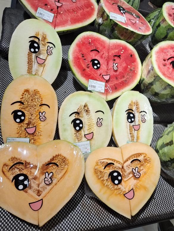 瓜類水果展露笑容、用各種造型,吸引顧客駐足、觀賞和挑選。各門店均從試吃、便捷、服務(wù)等細(xì)節(jié)處入手,通過擬人化處理。讓瓜果層層疊疊,組成領(lǐng)“鮮”一步的鮮果盛宴。