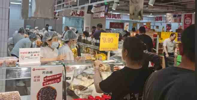 除此之外,該店在經營上的另外一個明顯特點是,雖然突出硬折扣,但保留了蔬果生鮮、水產活鮮和熟食加工等對于周邊居民消費有著強購物黏性民生品,使得該店對于周邊社區(qū)購物人群的覆蓋達到最大化。