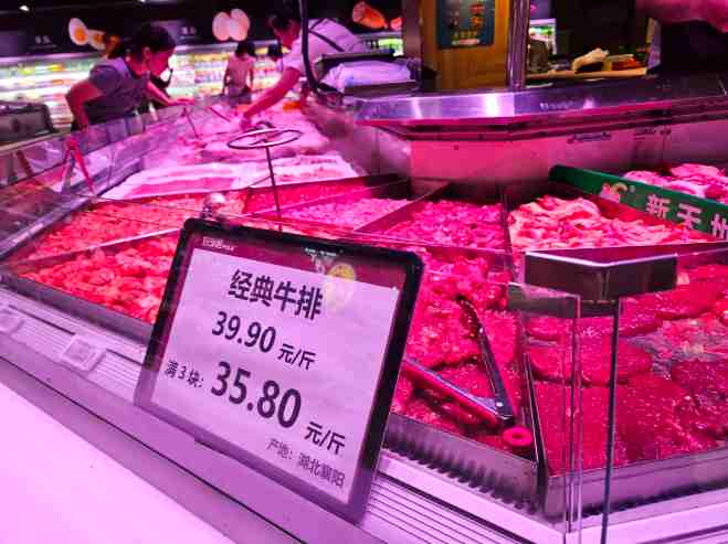 比如,襄陽(yáng)好鄰居的鮮牛肉被顧客稱為“會(huì)跳舞的牛肉”,是因?yàn)槠洳少?gòu)直接到養(yǎng)牛農(nóng)場(chǎng)選牛、屠宰廠現(xiàn)場(chǎng)宰殺、及時(shí)規(guī)范處理,分割好的鮮牛肉當(dāng)天就可以配送到店上架銷售,由于宰殺后不久,牛肉的肌肉、神經(jīng)還在機(jī)械性收縮,就會(huì)出現(xiàn)顧客在賣場(chǎng)看到的“會(huì)跳舞的牛肉”。