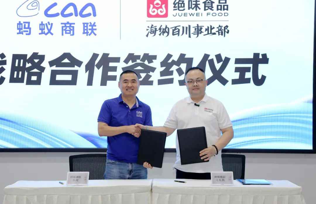 2025年6月19日 星期四 河南鄭州——今日,在螞蟻商聯(lián)總部舉辦的《助力調(diào)改 超市加工區(qū)調(diào)改研討會(huì)(第二期)》現(xiàn)場(chǎng),螞蟻商聯(lián)與絕味食品海納百川事業(yè)部正式簽署戰(zhàn)略合作協(xié)議。螞蟻商聯(lián)總經(jīng)理鄭超與絕味食品海納百川事業(yè)部總經(jīng)理司胤衡代表雙方簽約,宣布將依托各自資源優(yōu)勢(shì),共同推動(dòng)商超加工區(qū)的定制化調(diào)改與效率升級(jí),助力零售行業(yè)高質(zhì)量發(fā)展。