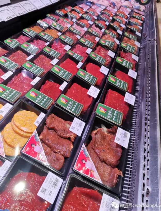 精品區(qū),保鮮溫度控制在0℃—4℃豬肉餡冰袋假低陳列、專用連續(xù)帶前腿瘦肉用保鮮膜包后急凍售賣散裝精品區(qū)采用保鮮柜托盤陳列,保鮮溫度控制在0℃—4℃,保證商品的鮮度,同時單品的分割更為精細,同類商品規(guī)格相對一致,提升商品的價值,滿足高中端顧客的需求;保鮮柜陳列同時還要注意保證商品陳列的量感。